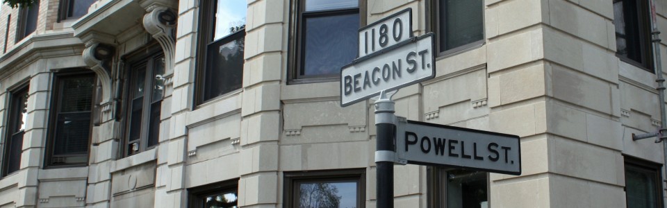 We are located in Brookline at the intersection of Beacon, Kent and Powell Streets.